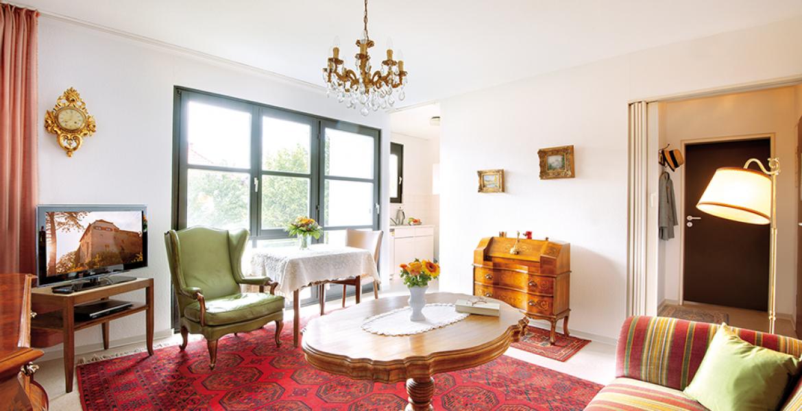 Geranienbepflanzte Balkone, ein gemütliches Café mit Kaminecke, eine umfangreiche Bibliothek und wöchentliche Gottesdienste in unserem liebevoll gestalteten Andachtsraum mit Hinterglasmalerei einer heimischen Künstlerin – all das gehört in unserer Residenz zum Standard.
