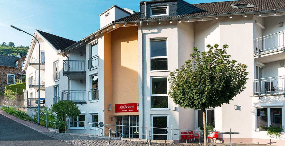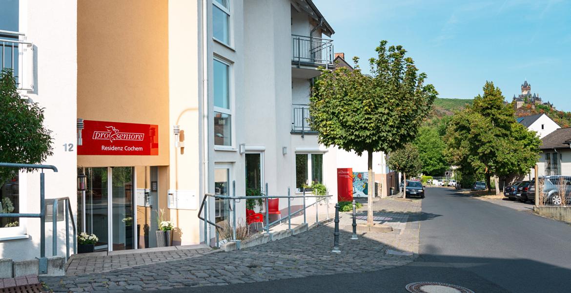Unsere Pro Seniore Residenz Cochem liegt ruhig in einem Wohngebiet im idyllischen Stadtteil Cochem-Sehl. Von hier aus hat man einen wunderschönen Blick auf die Mosel, die Weinberge und die Reichsburg von Cochem.