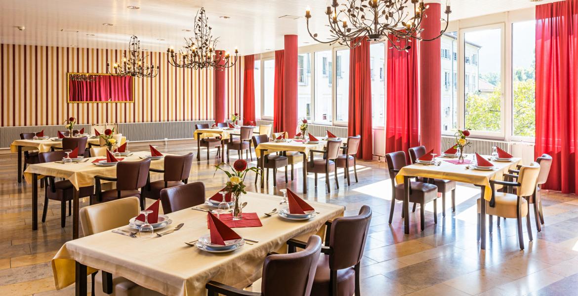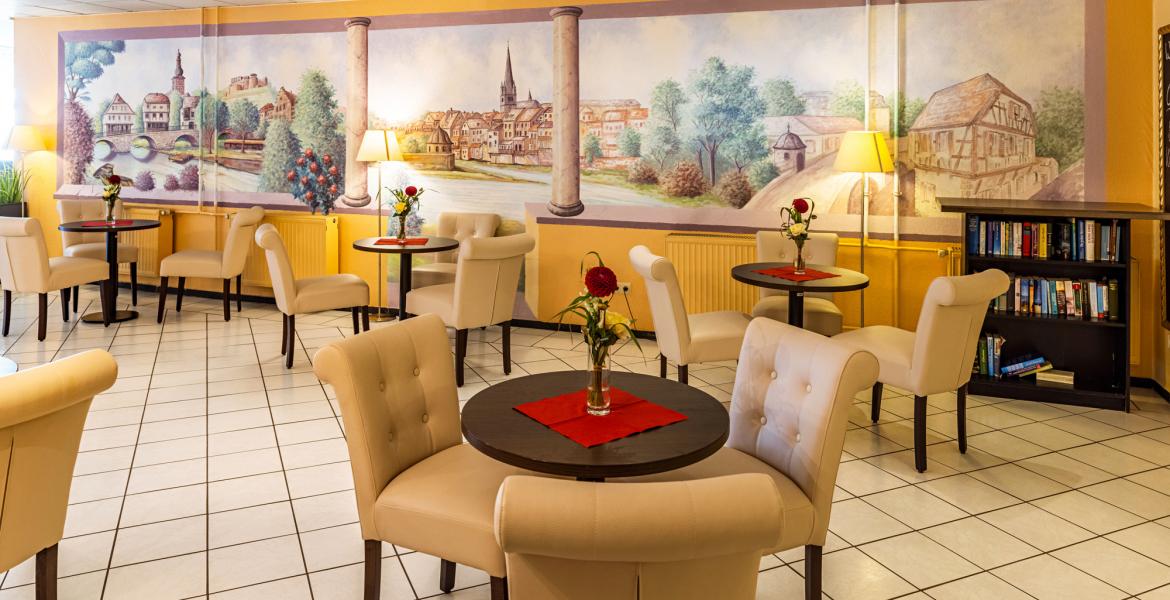 Ein lichtdurchfluteter Eingangsbereich mit Rezeption, das beliebte Café, eine Bibliothek und helle, jahreszeitlich dekorierte Speiseräume – all das gehört bei uns zum Standard.